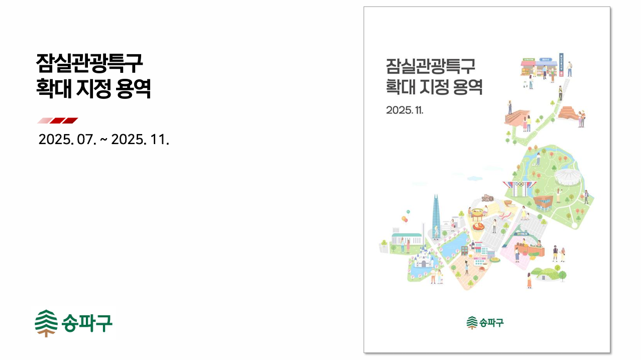 - 잠실관광특구의 가치를 제고하고 유동인구 유입 극대화를 위하여, 특구와 인접한 송리단길, 방이시장, 풍납토성 일대 등의 관광자원을 잠실관광특구에 편입하도록 하는 특구 확대 지정안의 타당성을 검증하고자 ...